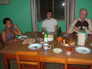 Taigi, su mumis keliavo du anglai - brandaus amziaus zmones, abu iseje i pensija - Robas ir Dzudi. Robas savanoriauja per VSO (voluntary service overseas), o Dzudi jam siaip palaiko kompanija. Jis cia jau 6 menesiai (atvyko is viso 2 metams), abu buve pedagogai, jis labai megsta savo darba ir labai dziaugiasi cia dirbdamas, tik dabar uzsiemes medziagos perrasinejimu/paruosimu is naujo, nes ji per sudetinga sito koledzo studentams..